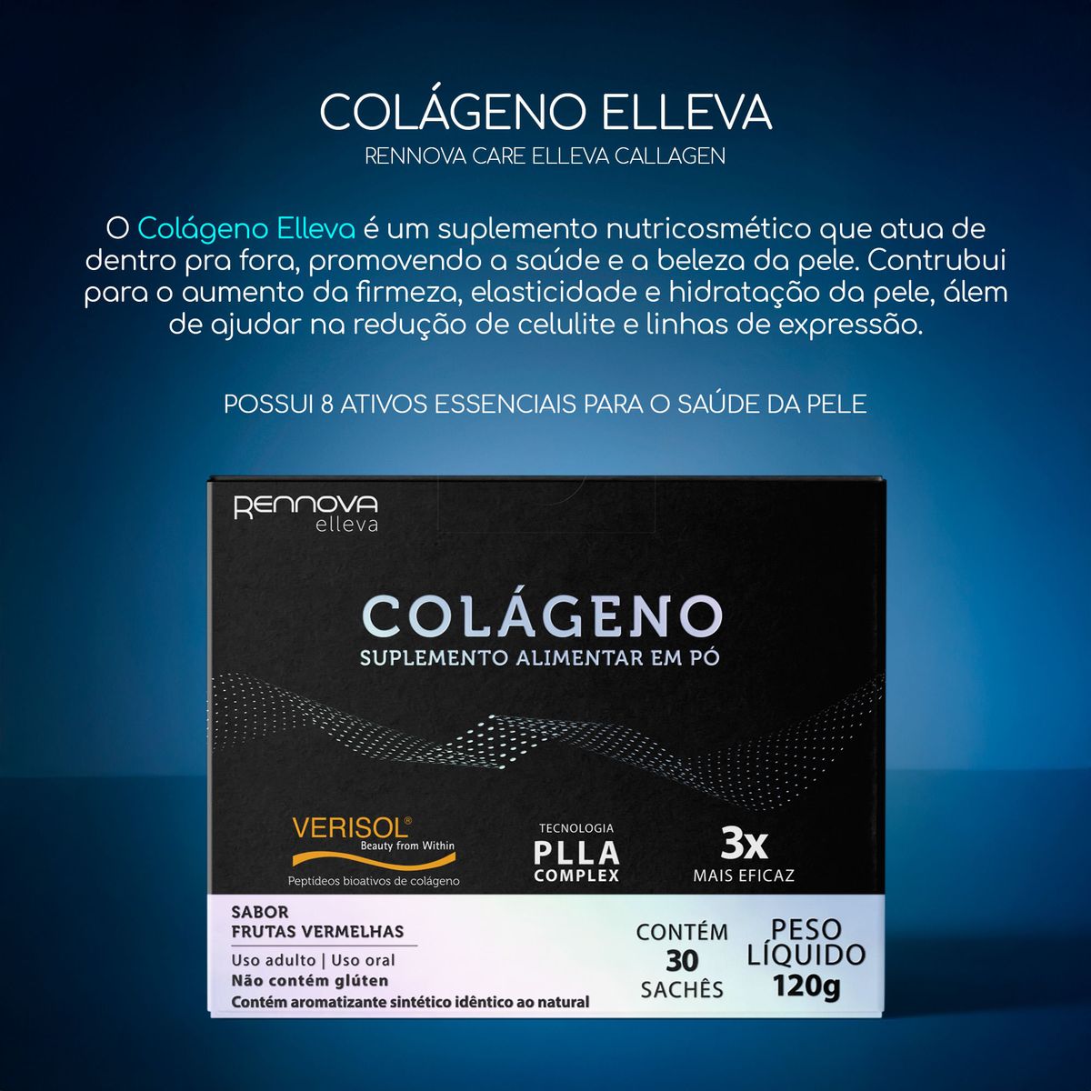 O Colágeno Elleva em Pó 30 Sachês foi desenvolvido para auxiliar no cuidado diário da pele, cabelos e unhas, reunindo uma combinação de peptídeos bioativos de colágeno Verisol® e 8 ativos essenciais que favorecem firmeza, hidratação e vitalidade. Sua formulação de alta performance concentra ingredientes com ação sinérgica, contribuindo para a elasticidade cutânea, fortalecimento dos fios e manutenção da saúde estrutural. A tecnologia aplicada ao produto proporciona um suplemento de rápida absorção, com partículas de colágeno hidrolisado de baixo peso molecular, permitindo melhor aproveitamento pelo organismo.